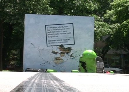Razbacani amortizeri, branici, i tragovi kočenja na platou pred banjalučkim Narodnim pozorištem. Nije saobraćajna nesreća, ali je na našim putevima nažalost prečesta slika. Zato su kompanija M:tel i Agencija za bezbjednost saobraćaja pokrenuli akciju kako bi upozorili građane da tokom vožnje ne smije biti slanja poruka, ni telefoniranja.