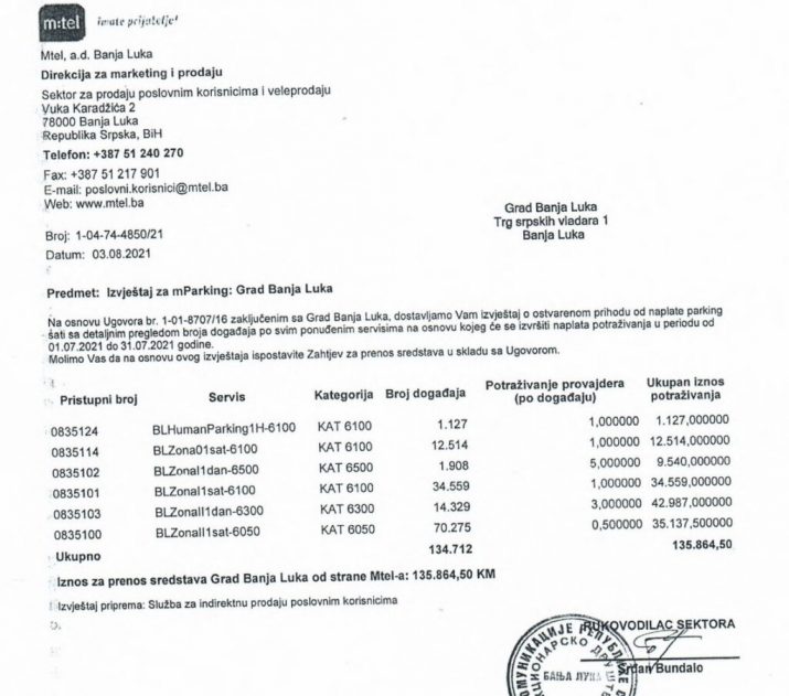 Prema podacima iz Mtela koji se nalaze u prijedlogu odluke o načinu raspodjele sredstava, za juli mjesec od humanih parkinga prikupljeno je 1.127 KM.