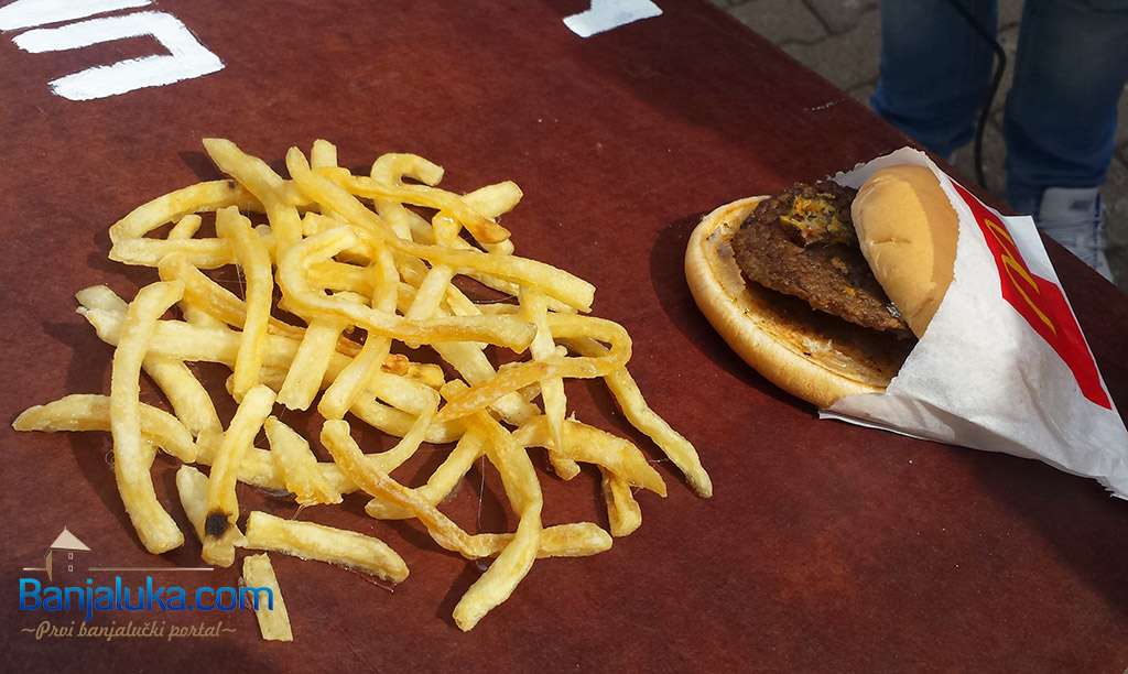 Davne 2012. godine istog dana kada je McDonalds otvoren u Banjaluci kupili smo hamburger u njemu a u isto vrijeme kupili smo ćevap i burek. Htjeli smo da vidimo koja hrana će duže izdržati u “borbi izdržljivosti”.