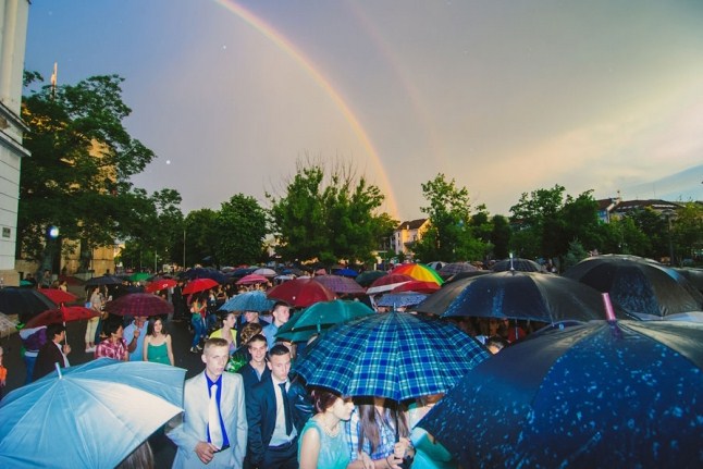 Svoje veče dočekali su i maturanti Poljoprivredne škole iz Banjaluke. Ni kišobrani u njihovim rukama nisu smetali besprijekorno sređenim dojučerašnjim prijateljima i prijateljicama iz razreda da zablistaju u punom sjaju u defileu centrom grada.