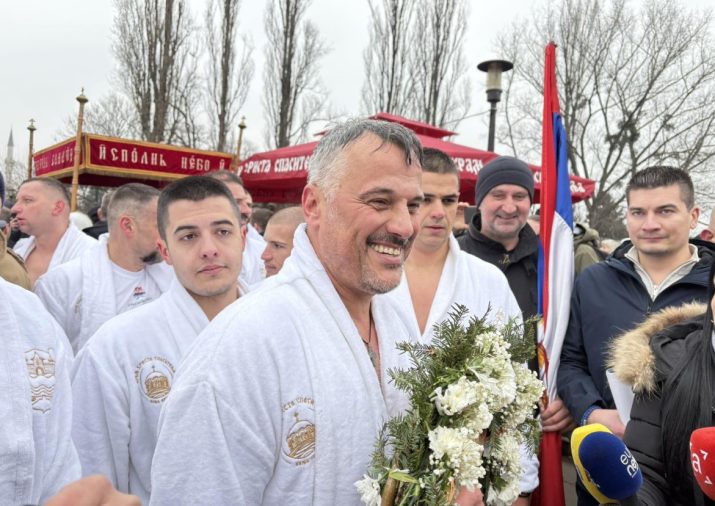 Dalibor Kajiš pobjednik je tradicionalnog plivanja za Časni krst na Bogojavljenje u rijeci Vrbas u Banjaluci.