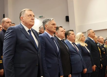 Svačanosti prisustvuje i delegacija Srbije, u kojoj su načelnik Generalštaba Vojske Srbije general Milan Mojsilović, direktor Policije Dragan Vasiljević, predstavnici Bezbjednosno-informativne agencije i ambasador Srbije u BiH Ivan Todorov.