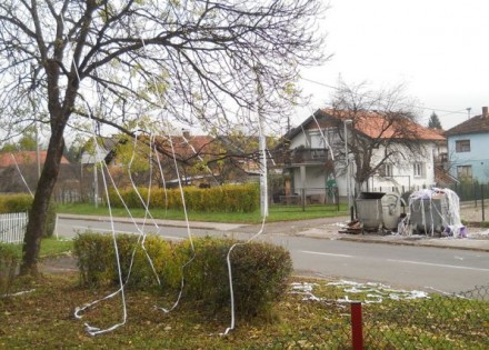 Enormna količina fiskalnih računa koja je bačena u kontejner poslužila je mališanima iz Šumadijske ulice u naselju Lazarevo da papirom “ukrase” ulice i drveće ove, ali i obližnjih ulica.