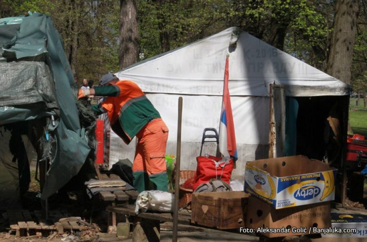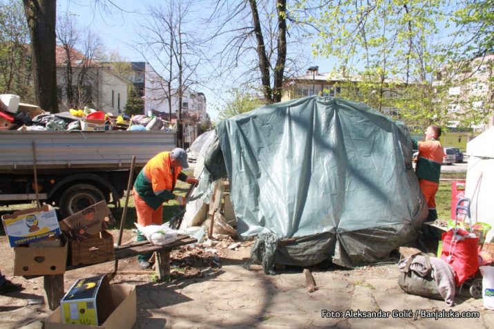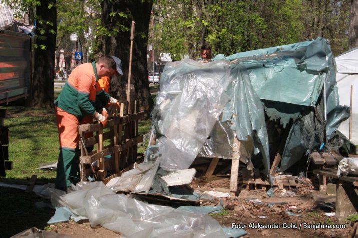Nakon gotovo sedam godina šator- naselja u parku Mladena Stojanovića, radnici Čistoće maločas su počeli s njihovim uklanjanjem.