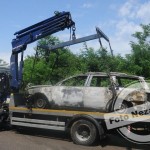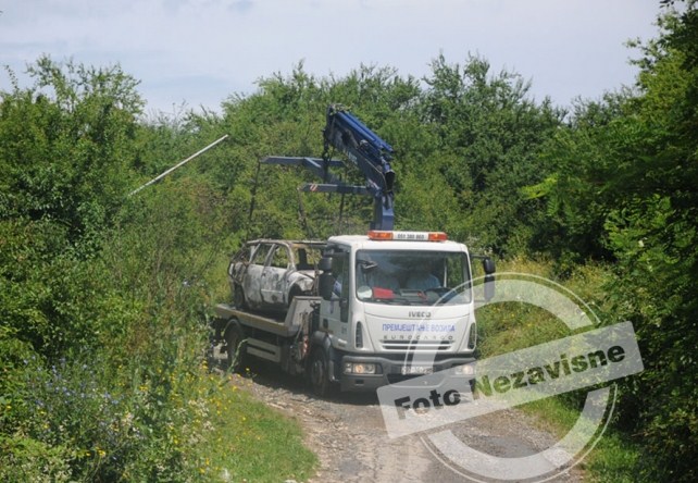 Policija je na putnom pravcu Banjaluka – Slatina pronašla zapaljeni automobil ”pasat” koji su razbojnici koristili u pljački Nove banke.