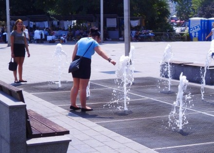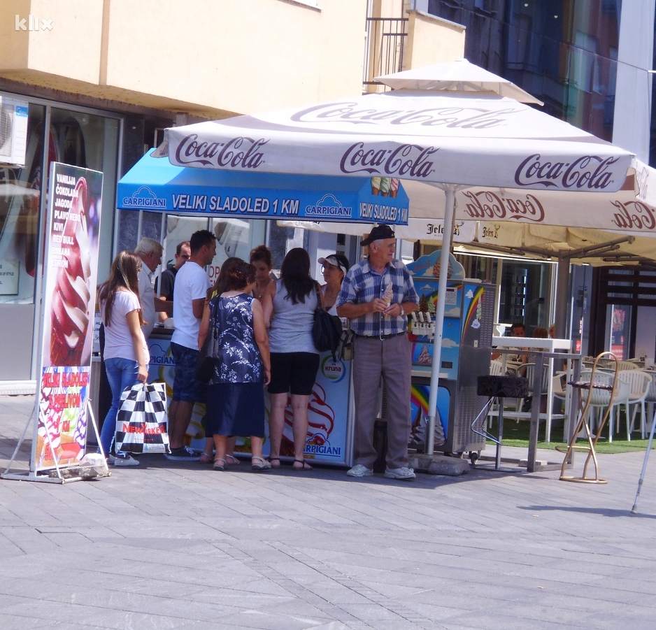 Ulice su pretežno puste, a prolaznici se rashlađuju uz sladoled, hladan napitak ili kod gradskih fontana.