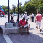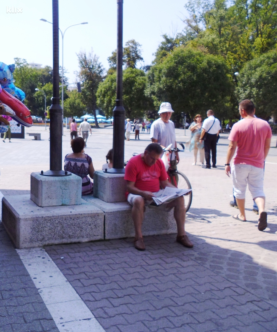 Zeleno svjetlo na semaforu, koje pješaci čekaju oko 80 sekundi, navelo je mnoge građane da i za to vrijeme potraže malo hlada. Penzioneri su ostali vjerni šahovskim figurama, pa i ovo popodne provode igrajući šah u parku. Dok se oni zabavljaju, nisu izostali ni oni kojima vrijeme konačno ide u korist, te popodnevni san provode upravo na gradskim klupama.