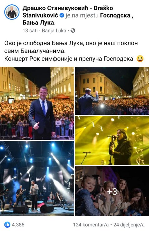 Fotografija djece, objavljena na FB profilu gradonačelnika Draška Stanivukovića, na kojoj se nalazi grupica djece, izazvala je najviše komentara, od svih zapisa sa sinoćnjeg koncerta.