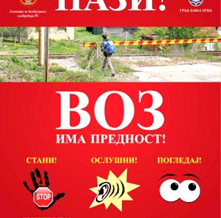 Predstavnici Administrativne službe Grada Banjaluka, u okviru medijske kampanje „Pazi, voz ima prednost“, posjetili su osnovne škole na području mjesnih zajednica Debeljaci, Vrbanja, Ada, Lazarevo I, Zalužani, Kuljani, Dragočaj, Prijakovci, Mišin han, Potkozarje i Piskavica i kroz razgovore sa učenicima ukazali na to kako bezbjedno preći preko željezničke pruge, te skrenuli pažnju na opasnosti prilikom kretanja preko pružnih prelaza. Tom prilikom, učenicima su podijeljeni promotivni leci.