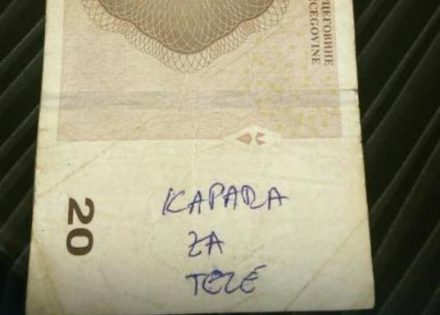 Gošća jednog banjalučkog kafića dobila je neobičan kusur, novčanicu od 20KM na kojoj je pisalo “kapara za tele”.