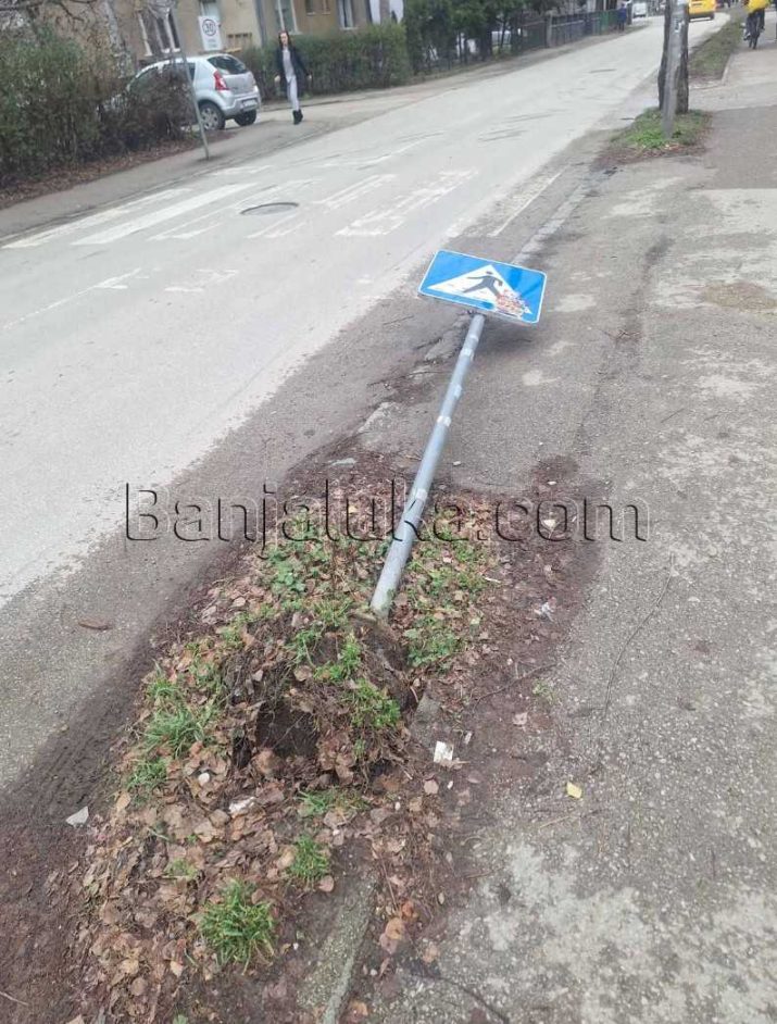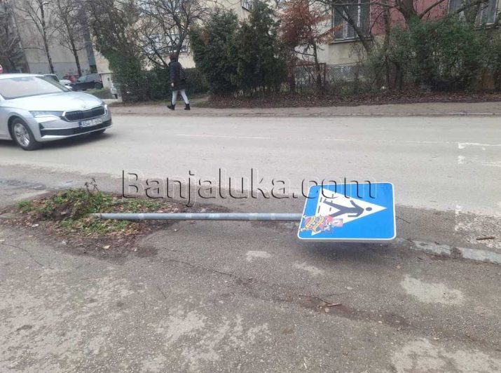 U ulici Carice Milice u banjalučkom naselju Obilićevo, kod ambulante, oboren je saobraćajni znak.