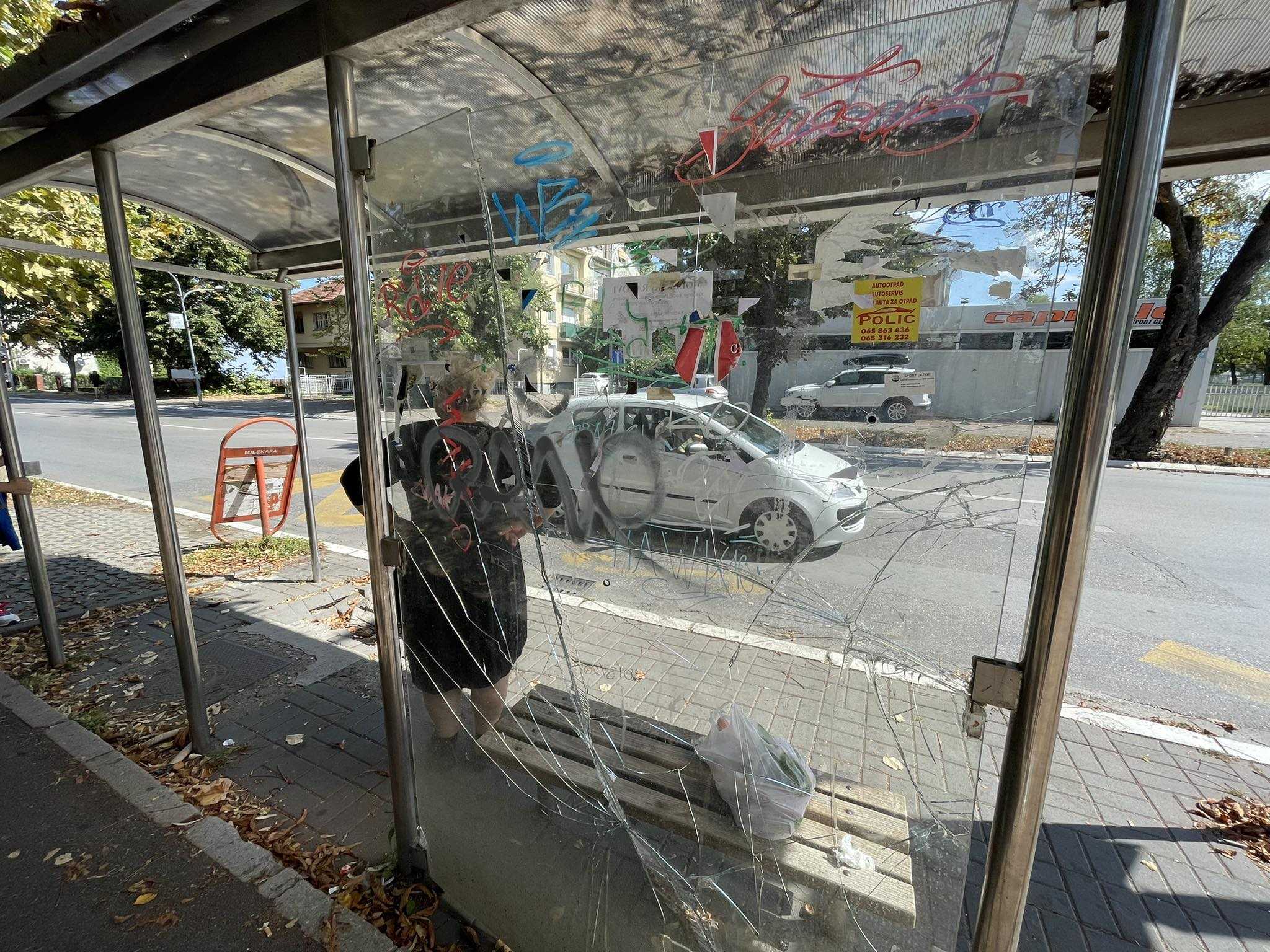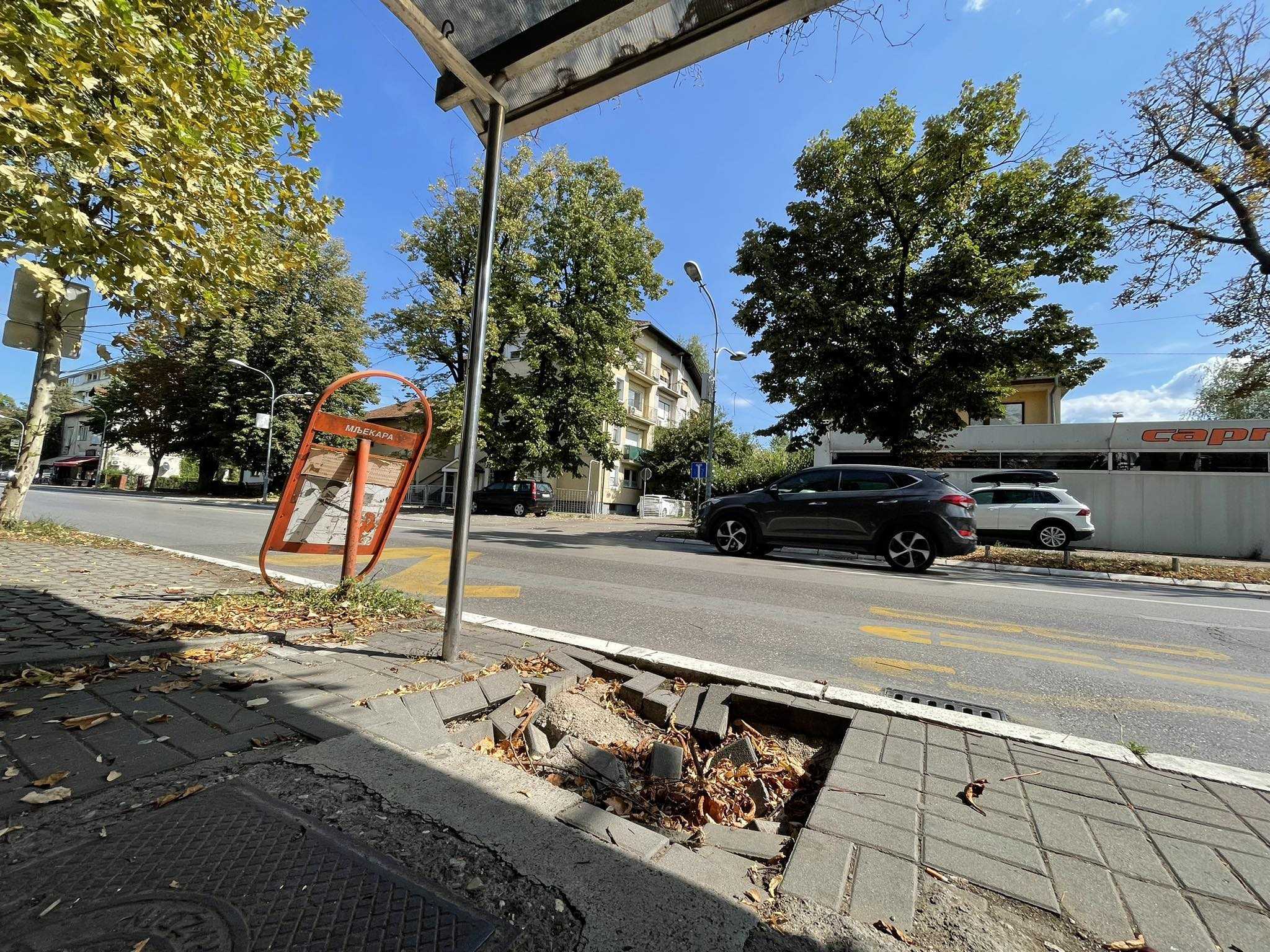 Samo malo dalje, u Ulici Dr Mladena Stojanovića, autobusko stajalište koje, sudeći po izgledu, niko odavno nije probao da popravi. Jedino staklo koje postoji je razbijeno i doslovno svaki momenat može da padne na one koji sjede na klupi. Stara, narandžasta tabla polomljena. Nije sama od sebe, već od vandala, kojima isto tako, iz njima znanih razloga, smetaju stakla.