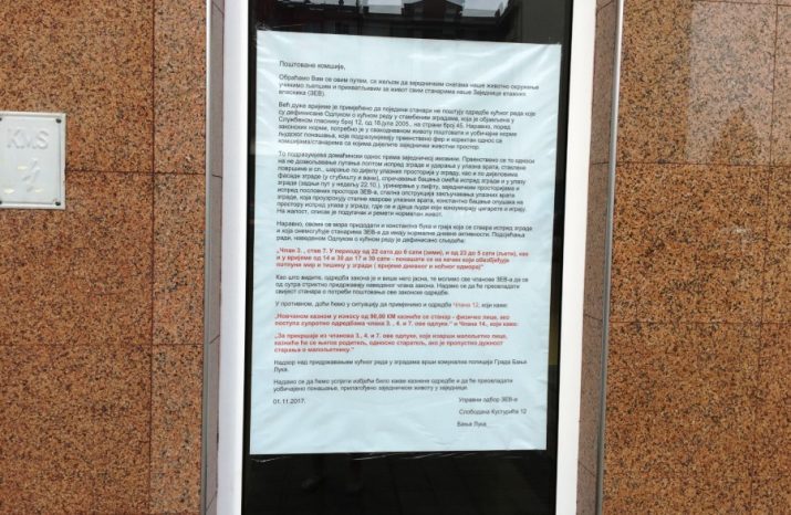 “Ovom se mora pridodati i konstantna buka i graja koja se stvara ispred zgrade i koja onemogućava stanarima ZEV-a da imaju normalne dnevne aktivnosti” – napisano je na obavještanju, na kome stoje i novčane kazne namijenjene onima koji ne poštuju pravila.