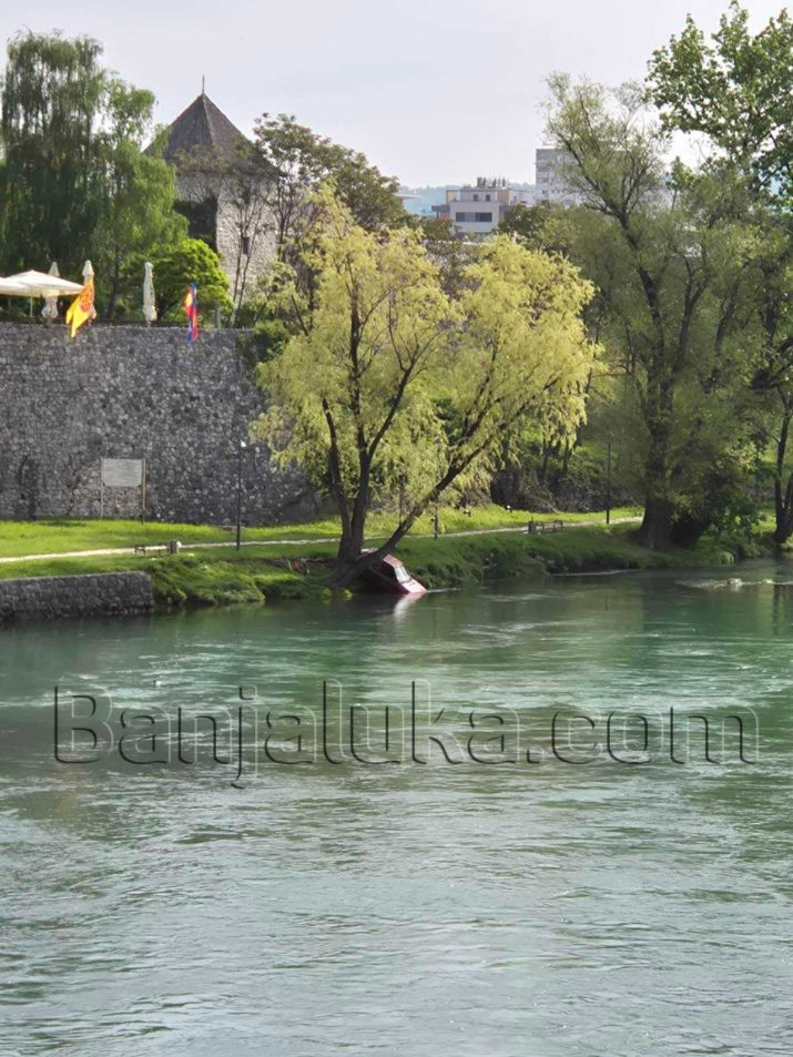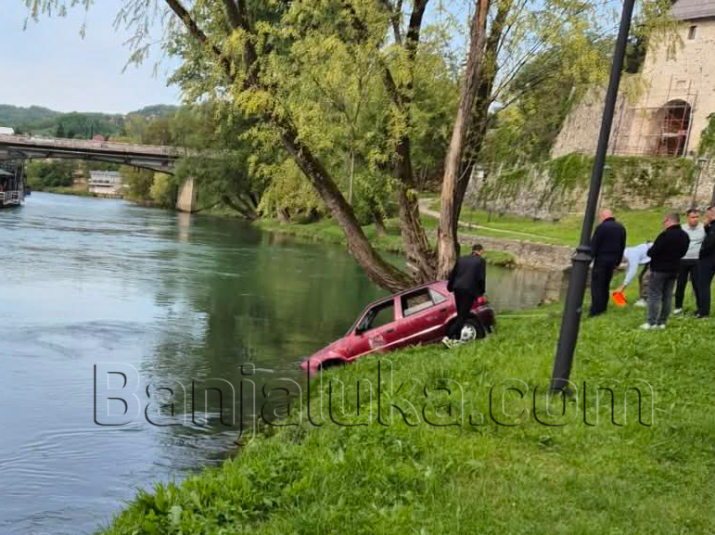 Nesvakidašnji prizor zabilježen je danas uz obalu Vrbasa, u neposrednoj blizini tvrđave Kastel, gdje je automobil prednjim dijelom završio u rijeci.