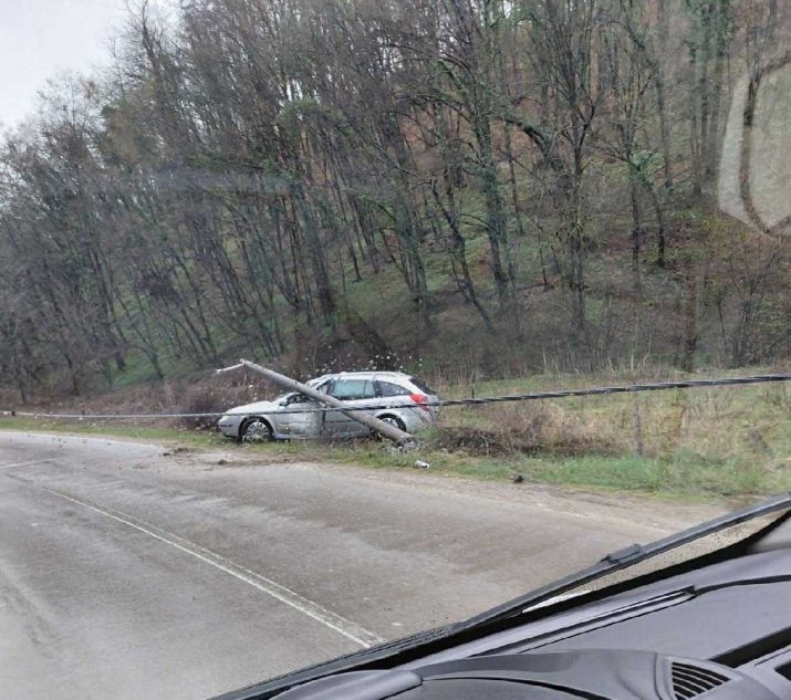 Prema fotografijima, koje su objavljene u Viber grupi, vidi se da je vozilo sletjelo sa kolovoza, a na njega je pao stud rasvjete.