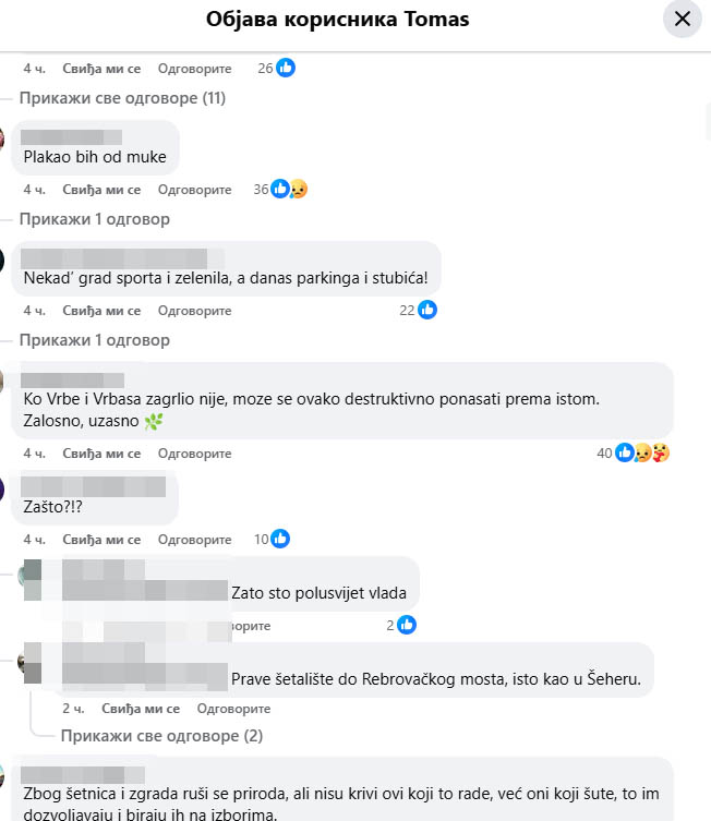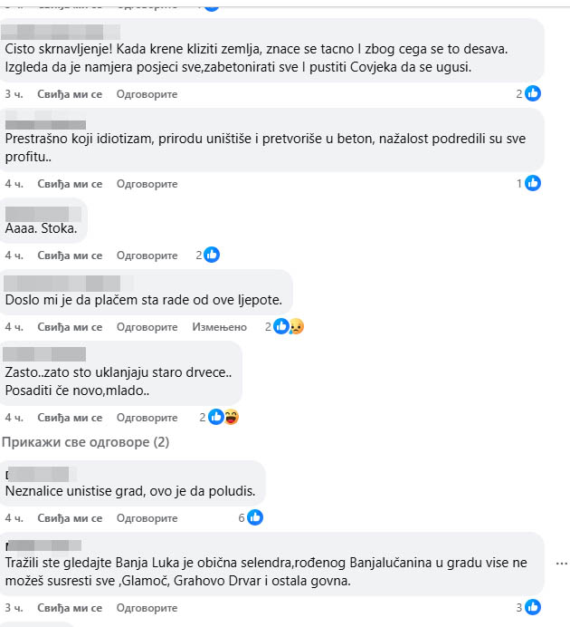 Njeno uklanjanje izazvalo je reakcije na društvenim mrežama, gdje građani izražavaju tugu, ali i ogorčenje zbog načina na koji je sve urađeno.