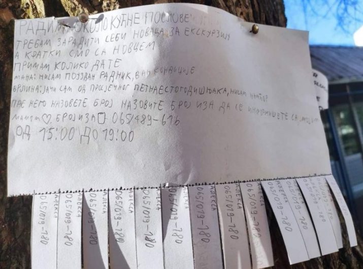 “Ko živi u Boriku ili je prolazio kroz ovo naselje mogao je ovih dana da vidi zanimljiv oglas – petnaestogodišnji Aleksa “radi okolokućne poslove”.