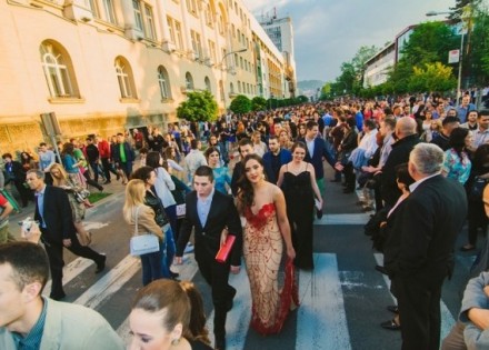 Oko 360 gimnazijalaca, odjevenih u svečana odijela i raznobojne haljine, okupilo se u subotu uveče na Trgu Krajine i prodefilovalo glavnom gradskom ulicom. Proslava maturske večeri potom je nastavljena do ranih jutarnjih časova u Banskom dvoru.