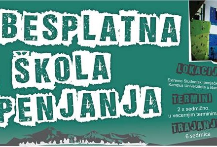Penjački klub Extreme organizuje besplatnu školu penjanja za sve zainteresovane odrasle osobe ali i za osnovce, koja će početi od 02. marta. Trajanje škole je oko mjesec i po dva puta sedmično u večernjim terminima.