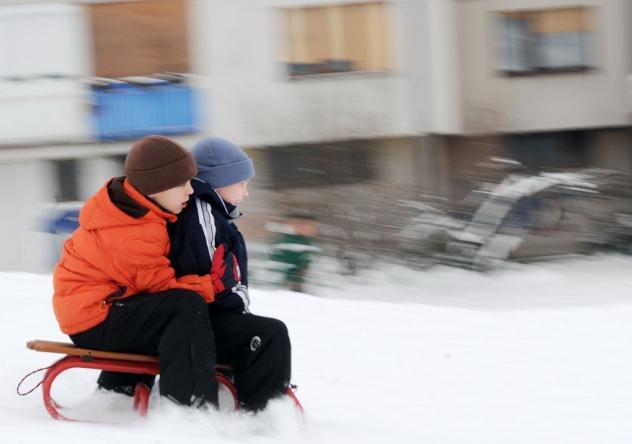 Dok nadležne službe u Banjaluci čiste snijeg sa saobraćajnica, mališani su prvi ovogodišnji snijeg iskoristili kako bi se sankali i igrali.