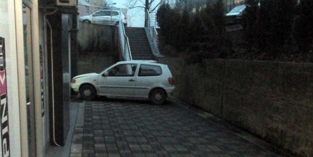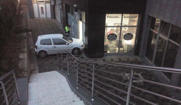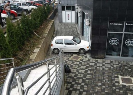 “Taj događaj iznenadio je mnogobrojne prolaznike. Automobil s parkinga prilikom paljenja u brzini je sletio u ovaj uski prolaz i ‘parkirao’ se na susjedni pločnik”, naveo je Stanislav Jakica, autor (naslovne) fotografije.
