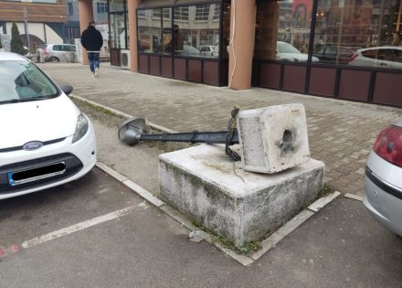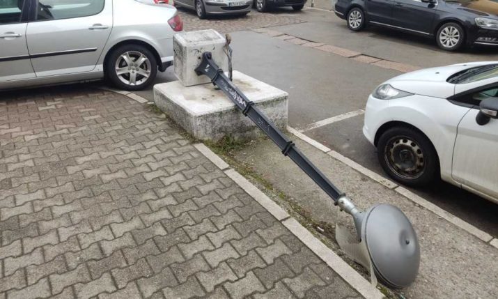 Na parking prostoru u Ulici Ivana Franje Jukića u centru Banjaluke noćas ili rano jutros oboren je stub javne rasvjete.