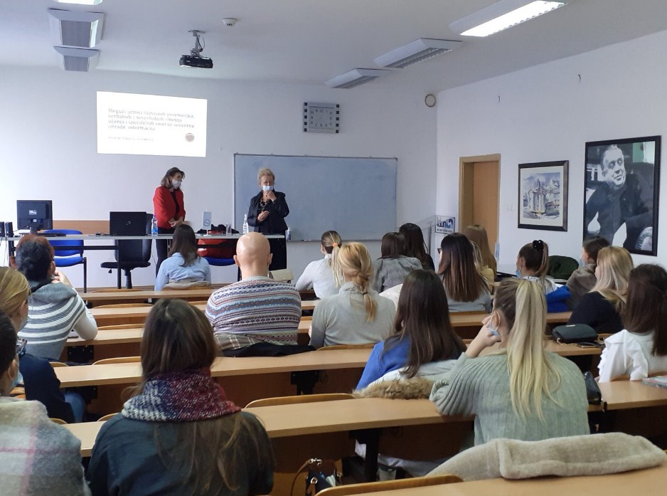 Na Nezavinsom univerzitetu Banjaluka danas je prof. dr Slavica Golubović, redovni profesor, master i doktorskih studija Univerziteta u Beogradu, Fakulteta za specijalnu edukaciju i rehabilitaciju održala predavanje na temu: “MOGUĆI UZROCI RAZVOJNIH POREMEĆAJA, VERBALNIH I NEVERBALNIH SMETNJI UČENJA I SPECIFIČNIH SMETNJI SENZORNE OBRADE” Predavanje prof.