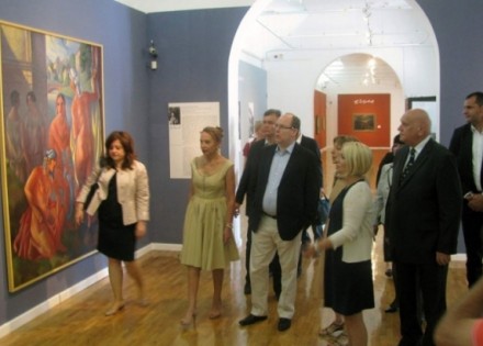 Princ Albert Drugi od Monaka posjetio je danas Muzej savremene umjetnosti Republike Srpske u Banjaluci u kojem je izložena postavka “Evropski konteksti – Dobrović, Konjović, Šumanović i Šuput”.