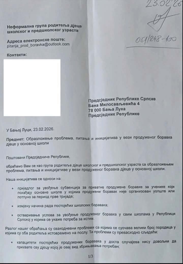 “U dopisu smo jasno ukazali na posljedice koje trenutna situacija ostavlja na djecu i porodice, kao i na potrebu hitnog i sistematskog rješenja tog pitanja kroz uvođenje subvencija i preciznije zakonsko regulisanje oblasti produženog boravka. Očekujemo njegov brz odgovor, kao i ozbiljno i odgovorno pristupanje ovom problemu koji direktno utiče na prva djece i svakodnevno funkcionisanje velikog broja djece”, poručuju iz neformlane grupe roditelja.