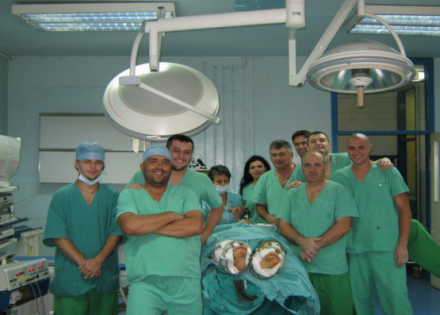 Operativni tim su sačinjavali mr sc. dr Nikola Bojić, mr sc. dr Zoran Bjelogrlić, dr Milorad Maran, dr Haris Vehabović, dr Ljubiša Tomić, dr Sanja Jeličić, instrumentari Raca Mira, Tomašević Goran i Lukić Dijana. Kompresivni prelomi pršljenskih tijela nastaju kao posljedica slabljenja njegove građe odnosno gubitka koštanog tkiva što rezultira smanjenom čvrstinom. Najčešći uzrok ovih promjena je osteoporoza. Ovakvi prelomi pršljenskog tijela su prvi klinički znak osteoporoze. Isto tako ukoliko su pršljenska tijela zahvaćena metastazama malignih tumora ili benignim tumorima krvnih sudova dolazi do razaranja koštanog tkiva. U tako izmjenjenim uslovima, moguće je da pri minimalnim traumama kao što su pokreti, naglo sjedanje ili lakši padovi, dođe do tzv. kompresivnog preloma pršljenskog tijela.