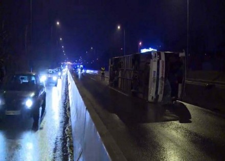 Kako nezvanično saznajemo, autobus se popeo na betonski stub dok je vozač izbjegavao vozilo koje je išlo pored njega, ali se u tom trenutku probio točak i došlo je do prevrtanja.