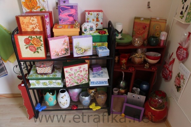 „Sve ostalo dešavalo se nekako usput. Izradu nakita proširila sam na izradu torbi, ukrasnih kutija, oslikavanje raznih predmeta od stakla, oslikavanje poslužavnika, posuđa, rokovnika.. u dekupaž tehnici. Sve ono što sam čula od kupaca ili vidjela na nekim drugim mjestima, počela sam i sama da pravim i to vrlo uspješno“, kaže Duljićeva.
