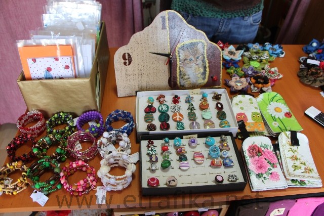 Osim izloženih radova, Jasmina izrađuje i stvari po narudžbi, ali i popravlja stare predmete i nakit. Sada su u njenoj radnji u ponudi razni ukrasi, nakit, torbe, kutije za nakit, futrole, četke, držači za ključeve, satovi, premeti od stakla, rezglednice, rokovnici..