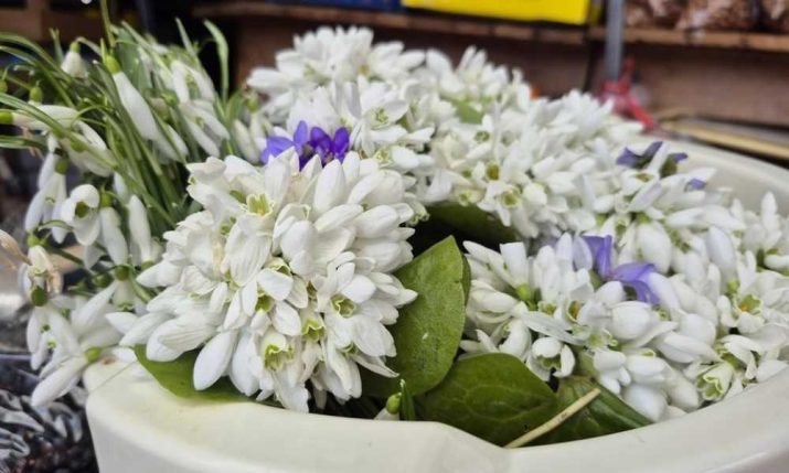 Prvi vjesnik proljeća stigao na banjalučku Tržnicu, kroz osmijeh kaže prodavačica Veselka koja ovih dana osim pored voća nudi i male bukete visibaba.