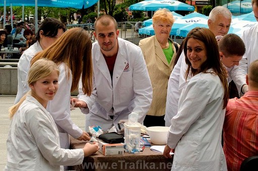 “Ovdje smo se okupili da našim sugrađanima besplatno izmerimo pritisak, šećer u krvi i tjelesnu težinu. Sa nama su i žene iz Saveza žena oboljelih od karcinoma dojke ‘Iskra’, koje podržavaju naš rad, a i mi njihov”, kazala je ona.