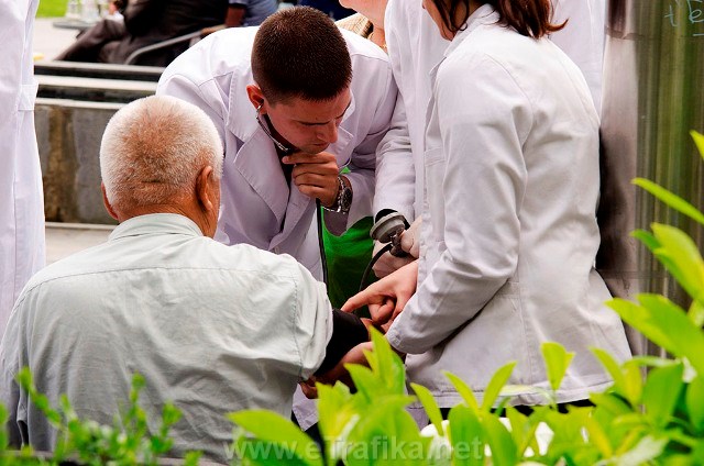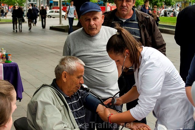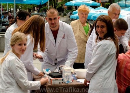 “Ovdje smo se okupili da našim sugrađanima besplatno izmerimo pritisak, šećer u krvi i tjelesnu težinu. Sa nama su i žene iz Saveza žena oboljelih od karcinoma dojke ‘Iskra’, koje podržavaju naš rad, a i mi njihov”, kazala je ona.
