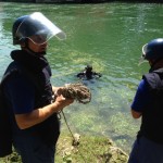 Članovi Ronilačkog kluba “Buk” su danas, zajedno sa Timom za uklanjanje minsko-eksplozivnih sredstava Civilne zaštite, uklonili bombe koje su pronađene u rijeci Vrbas neposredno ispod Gradskog mosta u Banjaluci.