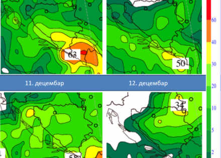 Republički hidrometeorološki zavod Republike Srpske obavještava da se periodu od četvrtka 9. decembra do nedjelje 12. decembra očekuju česte padavine uz jak vjetar.