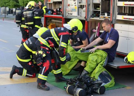 Banjalučani su danas imali priliku da vide pripadnike Civilne zaštite i vatrogasno-spasilačke jedinice u pravoj akciji ispred zgrade „Pošta Srpske“ u centru grada.
