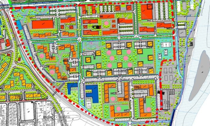 Zgrade su raspoređene u blokovima sa unutrašnjim dvorištima. Nešto niža spratnost predviđena je u gradnji prema obali Vrbasa i dijelom uz saobraćajnice. A uz veći broji višeporodičnih i stambeno-poslovnih objekata, uplanirane su i prateća infrastruktura i zelene površine. Posebno u dijelu kraj Vrbasa, planiran je i zeleni pojas, šetališta, parkovske površine i prostor za rekreaciju.