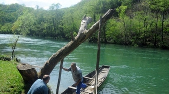 Mještani zaseoka Kaluđeri svakodnevno obavljaju obaveze prelazeći sa jedne na drugu obalu rijeke Vrbas starim čamcem.