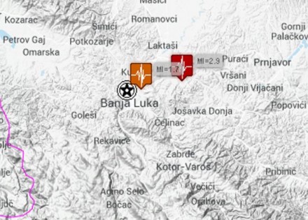 Zemljotres slabijeg intenziteta evidentiran je jutros u 8.57 časova na području Banjaluke.