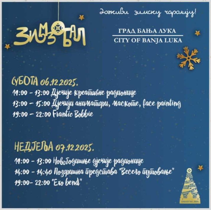Za najmlađe u subotu i nedjelju od 11.00 do 13.00 časova biće održane kreativne radionice, a u nedjelju 7. decembra od 14.00 časova moći će da pogledaju pozorišnu predstavu „Veselo putovanje“.
