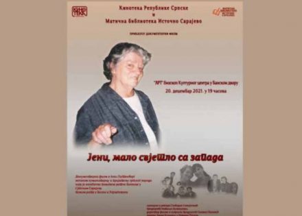 Kinoteka Republike Srpske i Matična biblioteka Istočno Sarajevo organizovaće večeras u Banjaluci promociju dokumentarnog filma “Jeni, malo svjetlo sa zapada”, reditelja Slobodana Simojlovića.