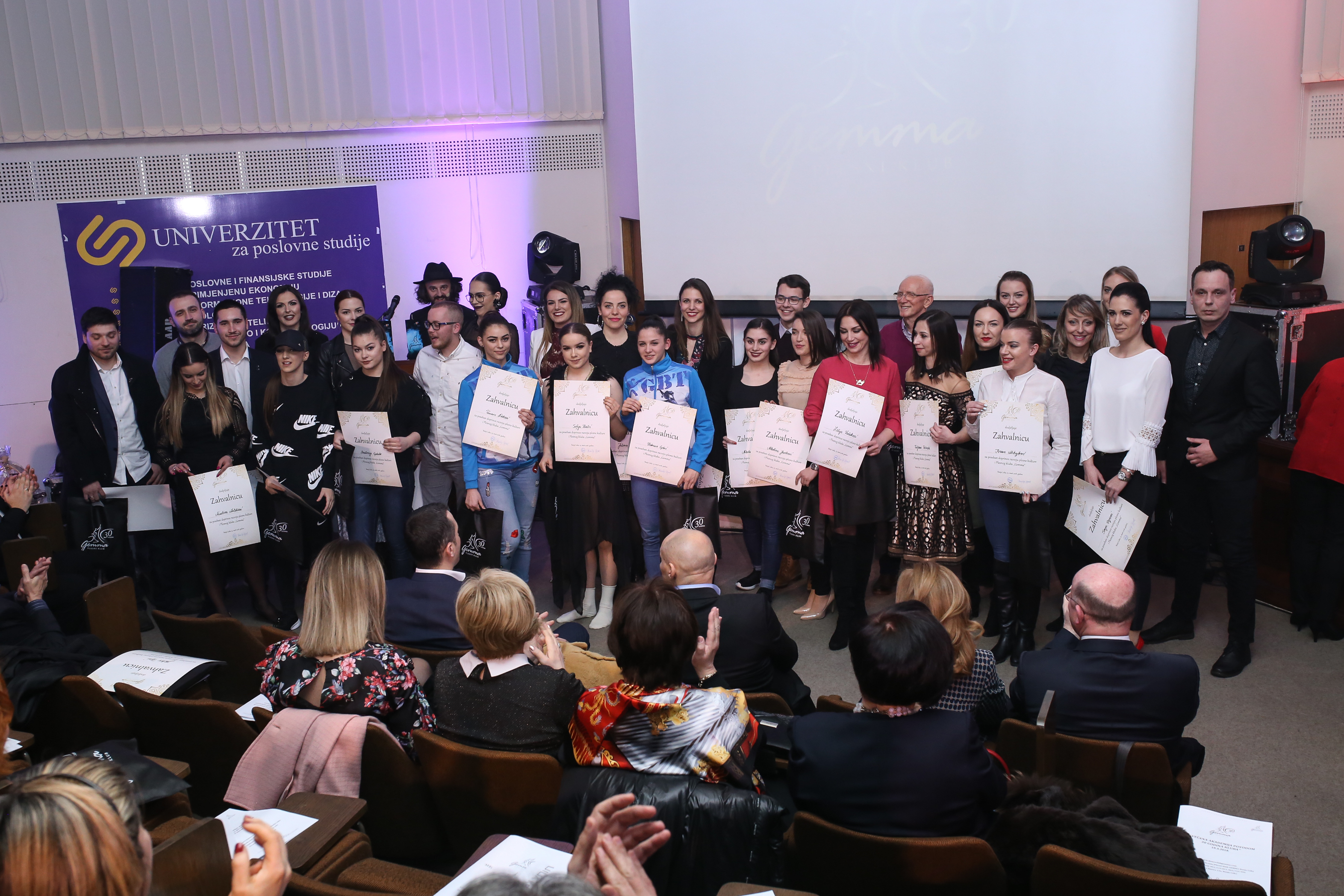 Plesni klub Gemma Svečanom akademijom proslavio je svoj 30. rodjendan. Amfiteatar Univerziteta poslovnih studija bio je prepun članova, bivših i sadašnjih, plesača, gostiju, zvanica. Manifestacija organizovana na vrhunskom nivou. Čestitke su pristigle iz cijelog svijeta a aplauzi su se nizali jedan za drugim.