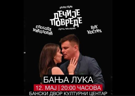 Nakon dva rekordno rasprodata termina igranja, predstava “Dečije povrede”, po tekstu Džozefa Radživa, u režiji Ivana Vukovića, treće igranje u Banjaluci doživjeće 12. maja u Kulturnom centru Banski dvor u 20 časova.