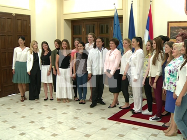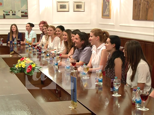 Gradska uprava Banjaluka organizovala je prijem za “zlatne” Banjalučanke, a umjetnike je dočekala zamjenik gradonačelnika Banjaluke Jasna Brkić.