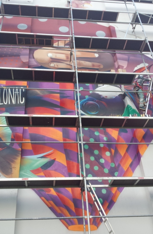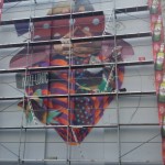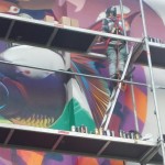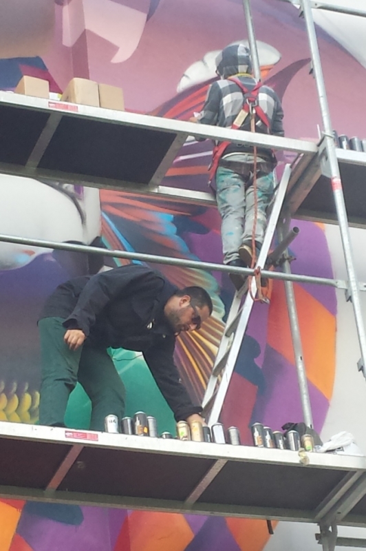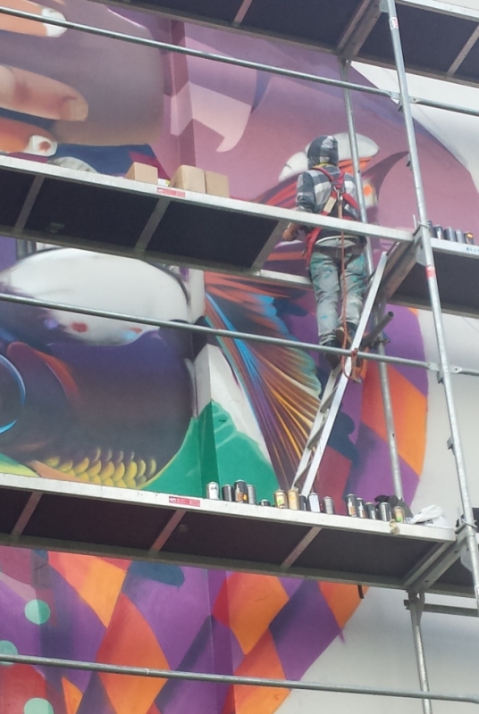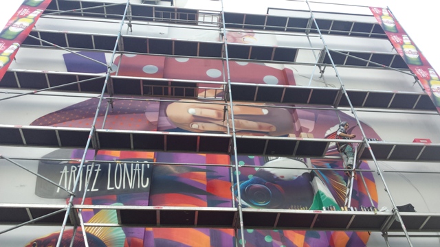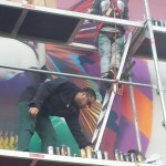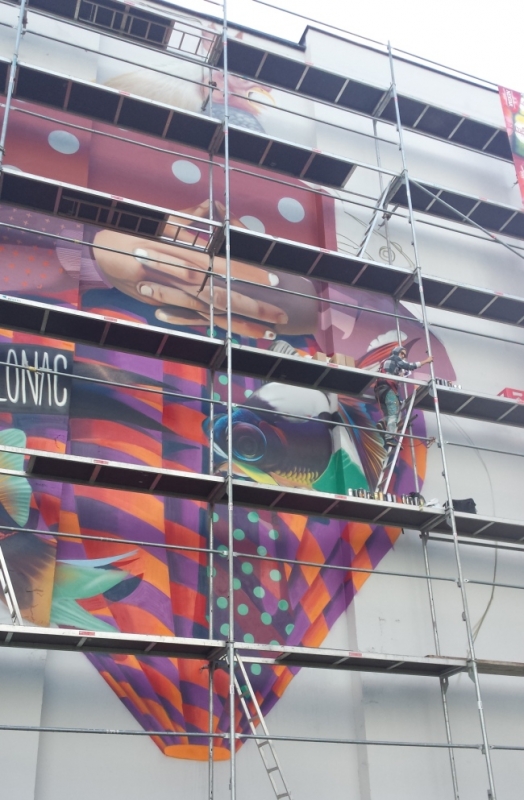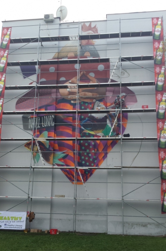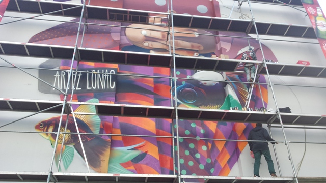 „Danas je četvrti dan rada, juče nas je kiša omela, pa nismo mogli raditi, a očekujemo da ćemo u naredna dva dana da završimo mural“, kaže Artez.