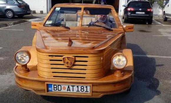 Vajar i slikar iz Budve Slavko Beronja prije desetak godina napravio je drveni automobil i dao mu ime “Krajišnik“.