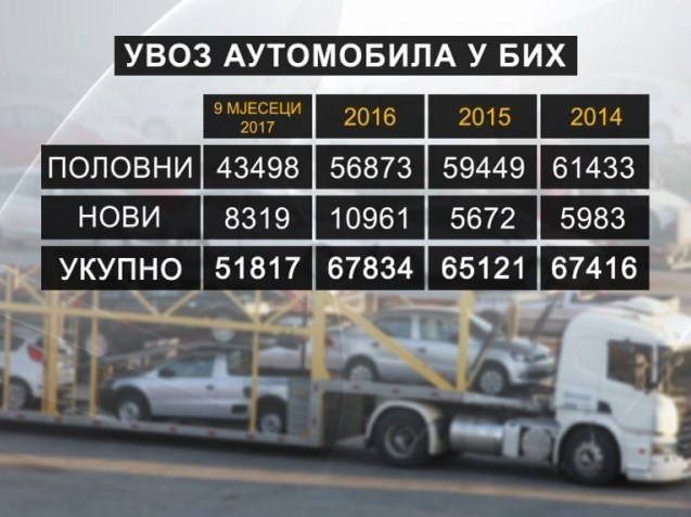 Posljednjih nekoliko godina, uvoz vozila u BiH je u blagom porastu. Prema podacima Uprave za indirektno oporezivanje, više od 80 odsto automobila koje uvezemo svake godine je već korišteno.
